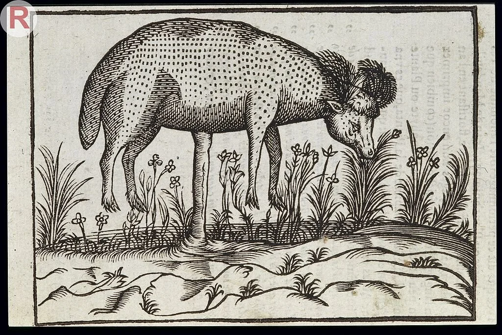 If this seems to be a bit of a cholent, it is. The description of the Ish Sadeh as being attached to the earth by some kind of umbilical cord invokes another legend, known as the Vegetable Lamb of Tartary, or alternatively, the Barometz. This was a mythical creature that was half-plant and half animal, usually in the form of a sheep. Like this: